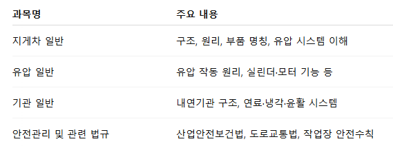 - “안전관리”, “지게차 일반”, “유압 일반” 등 주요 단원 반복 암기