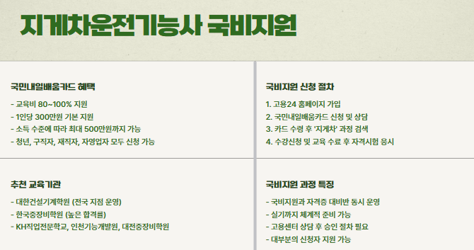 - 카드 수령 후 고용24에서 ‘지게차’ 과정 검색 및 수강신청
