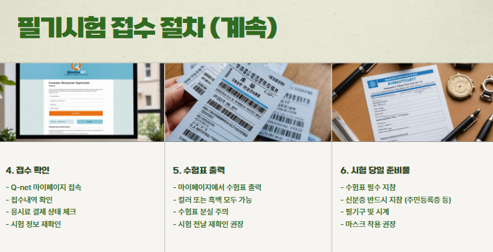 - Q-net 마이페이지에서 수험표 확인 및 출력