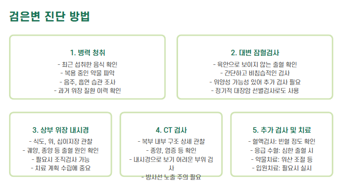 검은변이 나타났을 때, 단순한 변색인지 위장관 출혈인지를 구분하는 것이 매우 중요합니다.
