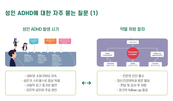 ➡ 대부분 소아 ADHD가 성인까지 이어지거나 성인기에 사회 스트레스, 과로로 드러나는 경우가 많습니다.