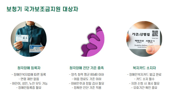 - 청각장애 등록 또는 복지카드 보유 확인