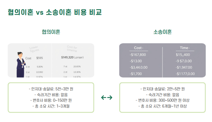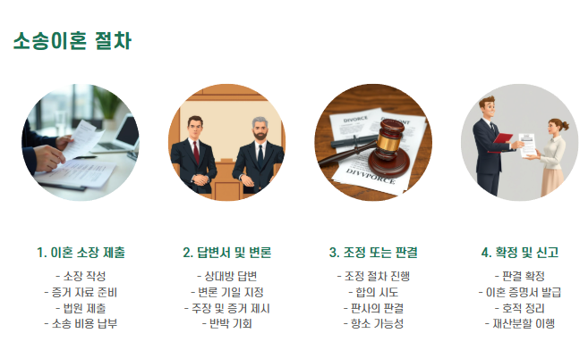 - 진행 방식: 변호사 선임 후 소송이혼 진행