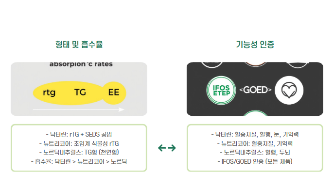 - 흡수율 최대 170%↑ (기존 rTG 대비, 국내 인체시험 결과 기준)