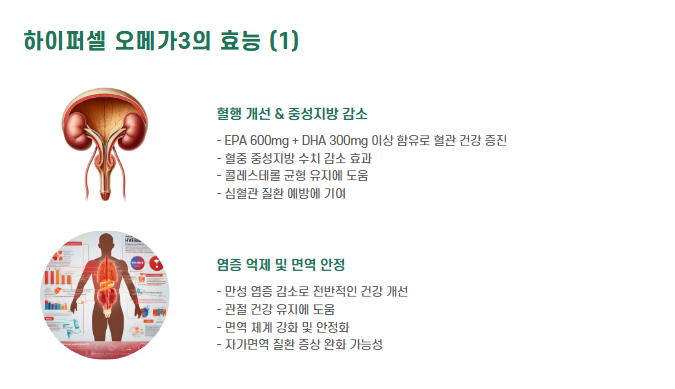 ✅ 복용량: FDA 권장 EPA+DHA 500–1,000 mg → 하이퍼셀은 900 mg으로 적정
