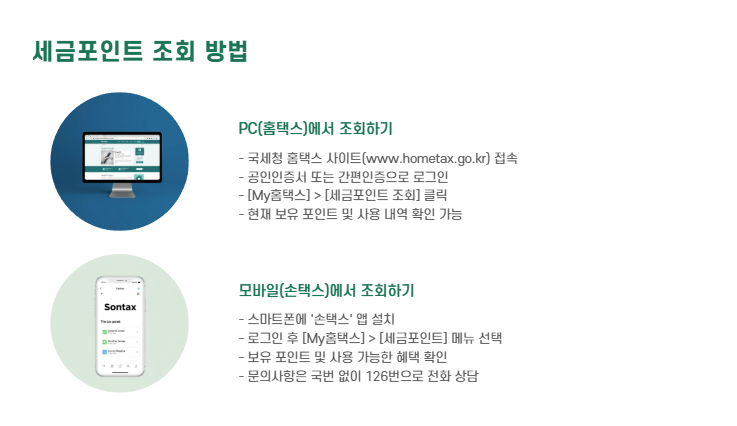 - 로그인 후 [My홈택스] > [세금포인트] 메뉴에서 조회 가능