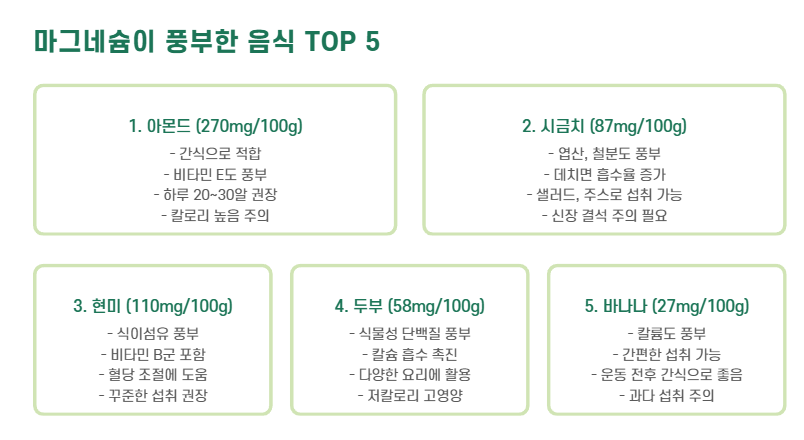 마그네슘 풍부한 음식 TOP5