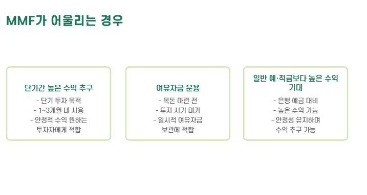 | 추천 대상 | 단기 투자형 | 생활비 관리형 | 예치금 잠깐 보관용 |