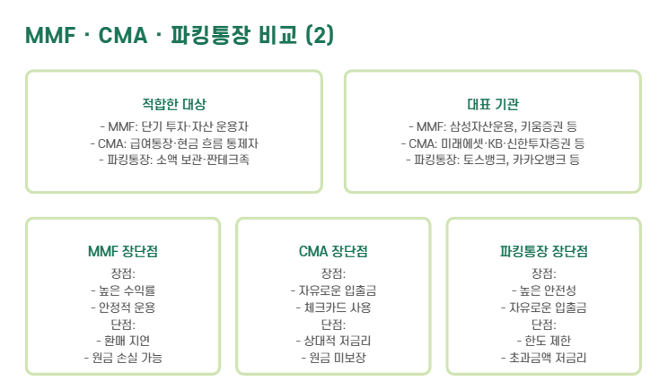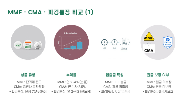 이 글에서는 MMF·CMA·파킹통장 정의, 차이점, 장단점, 추천 상황까지 자세히 비교해드립니다.