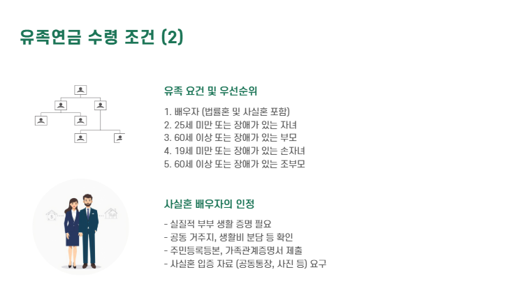 법률혼 외에도 사실혼 배우자 역시 유족연금을 받을 수 있습니다.