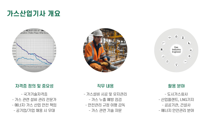 가스산업기사는 가스 관련 설비의 설치, 점검, 유지보수 업무를 수행할 수 있는 국가기술자격증입니다.