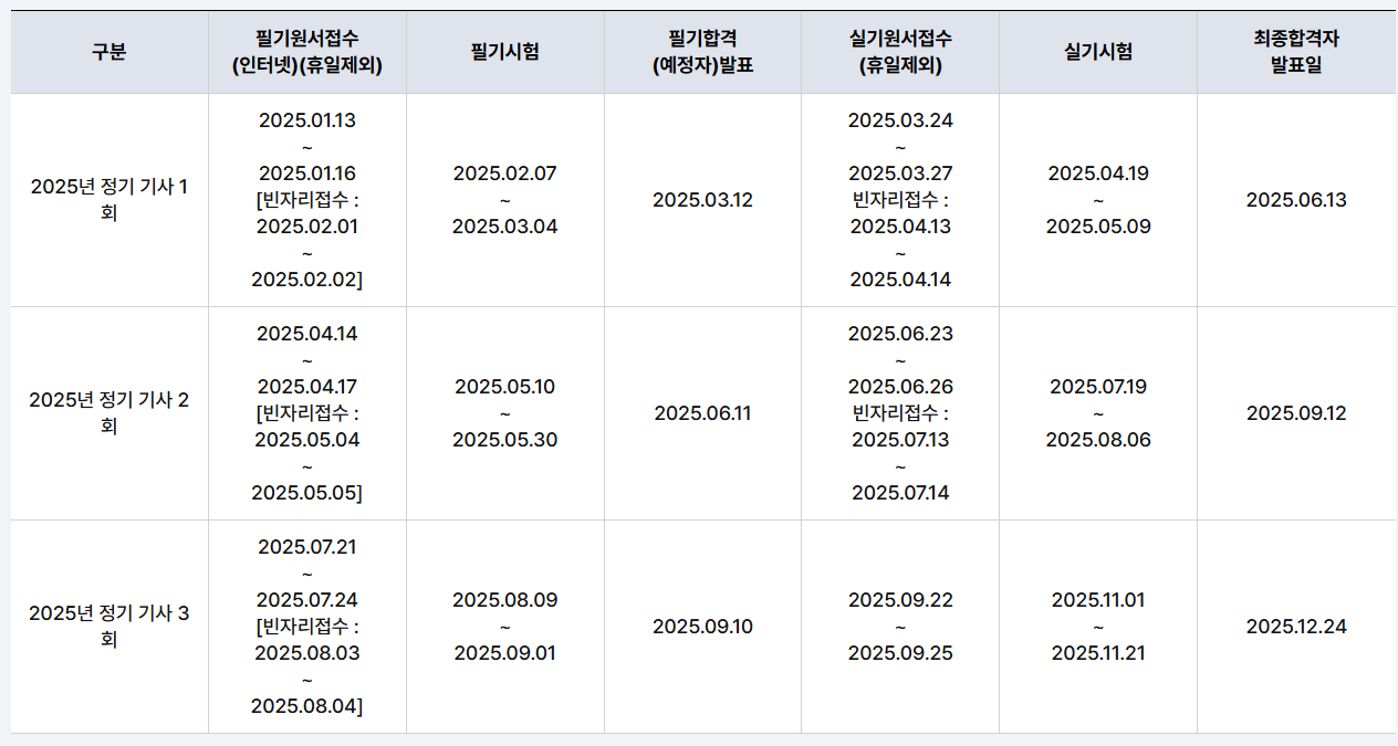 ✅ 2025년도 시험일정