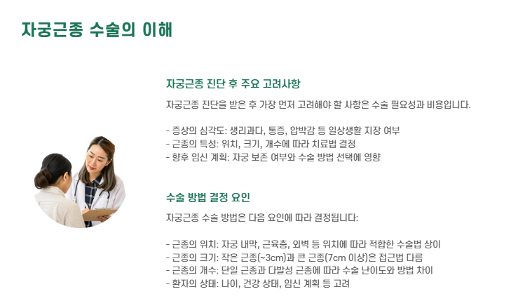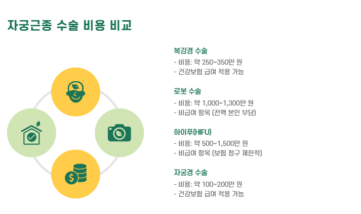 자궁근종은 위치, 크기, 개수에 따라 수술 방법도 다르고, 비용 차이도 큽니다.