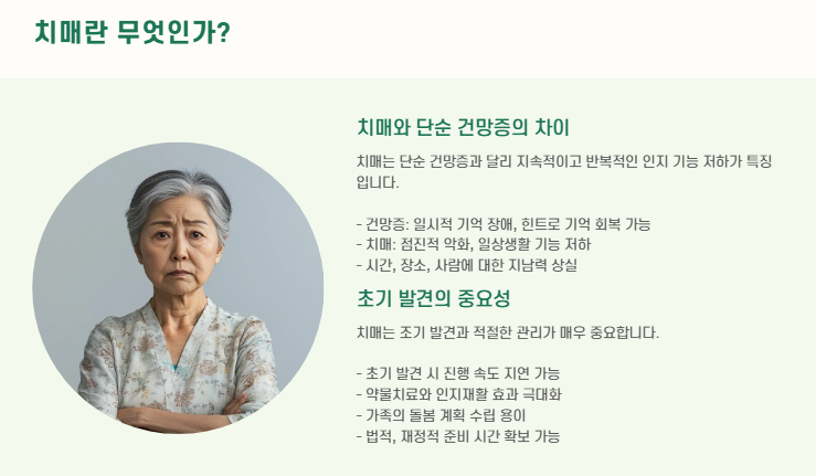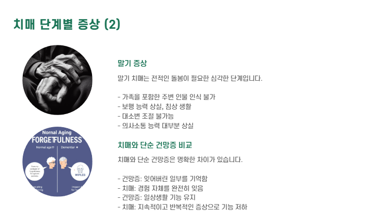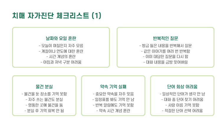 ※ 단순 건망증과 달리, 치매는 지속적이고 반복적인 증상이 특징입니다.
