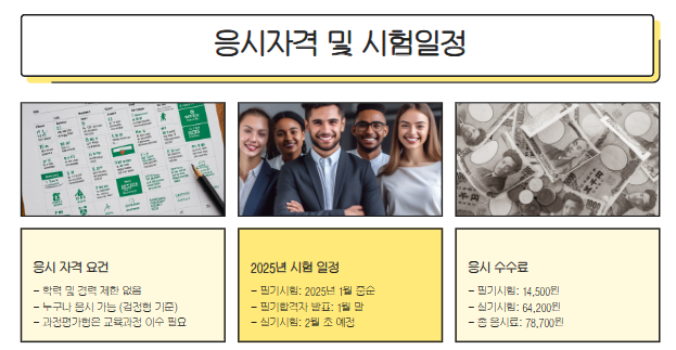 학력이나 경력 제한 없이 도전할 수 있는 검정형 국가자격증입니다.