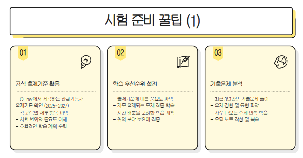 최근 3년간의 기출문제를 분석하여 자주 출제되는 주제를 파악하고, 반복 학습을 통해 정확도를 높이세요. 기출문제는 시험의 출제 경향을 이해하는 데 매우 유용합니다.