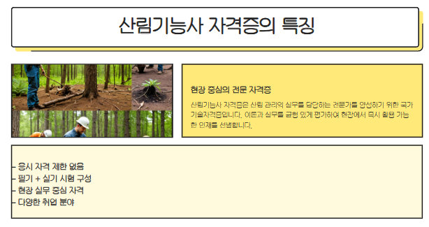 - 현장 실무 중심 자격: 임업 장비 다루는 기술까지 포함
