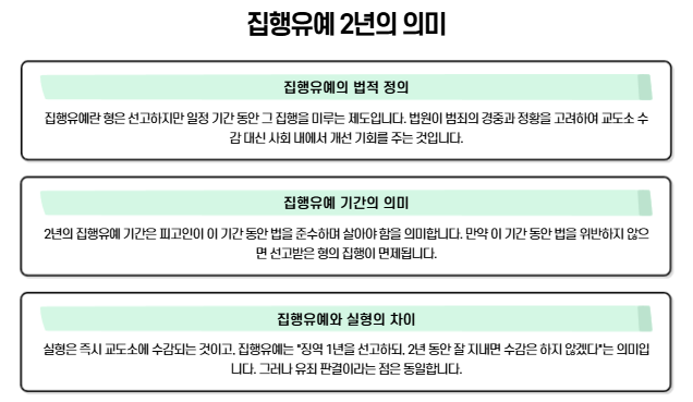 | 집행유예 2년 | 형 집행을 2년간 유예, 조건 위반 없으면 면제 |