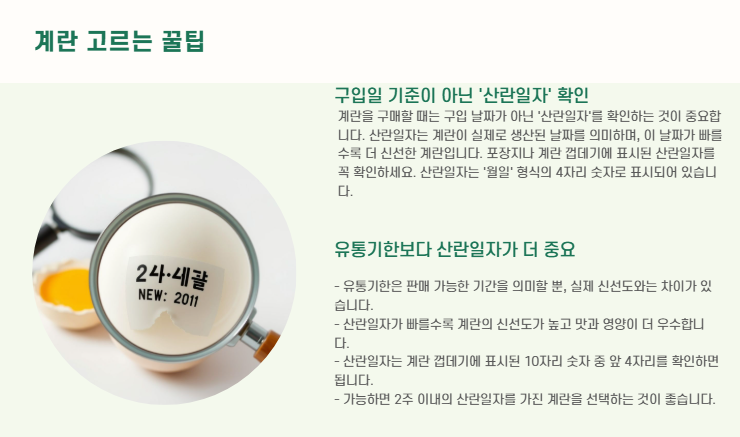 → 계란 껍질엔 자연 보호막이 있어 물에 씻으면 오히려 세균이 들어갈 수 있습니다.