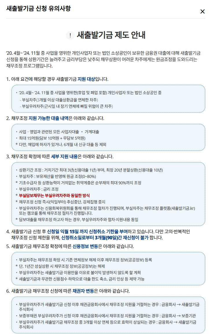 | 대상자 유형 | 개인 연체자, 소상공인·자영업자 포함 가능 (새출발기금 적용 대상 확대) |