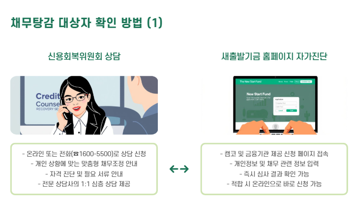 - 전화 상담 시, "채무탕감 대상 여부 확인 및 새출발기금 신청 가능성" 묻기
