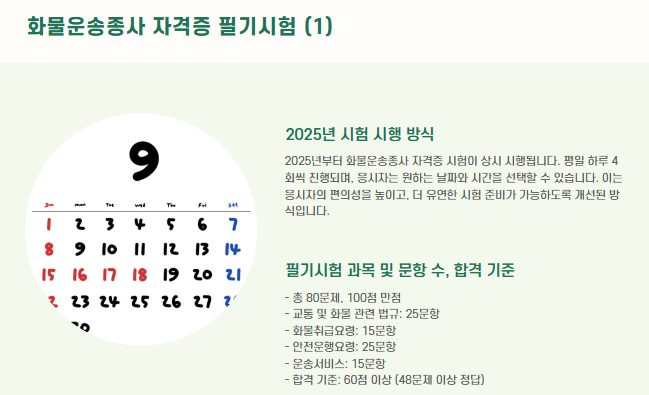 물운송종사 자격증 시험은 총 80문제, 100점 만점이며, 60점 이상이면 합격입니다. 과목별 문항 수는 아래와 같습니다: