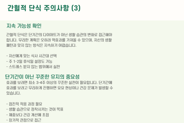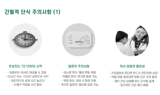 즉, 식사 시간을 집중적으로 관리하며, 나머지 시간에는 칼로리 섭취를 제한합니다.