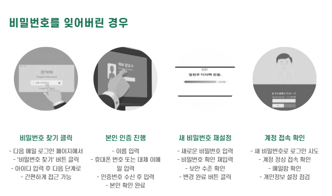 아이디는 찾았지만 비밀번호가 기억나지 않는 경우, 다음 절차로 진행하시기 바랍니다.
