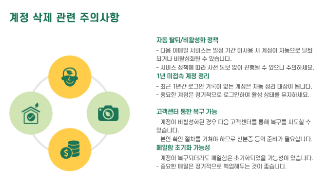 다음 이메일 서비스 정책에 따라, 일정 기간 이상 사용하지 않으면 계정이 자동 탈퇴되거나 비활성화될 수 있습니다.