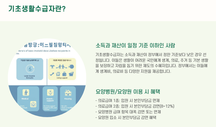 - 기초수급자 / 의료급여 2종 / 장기요양 2등급