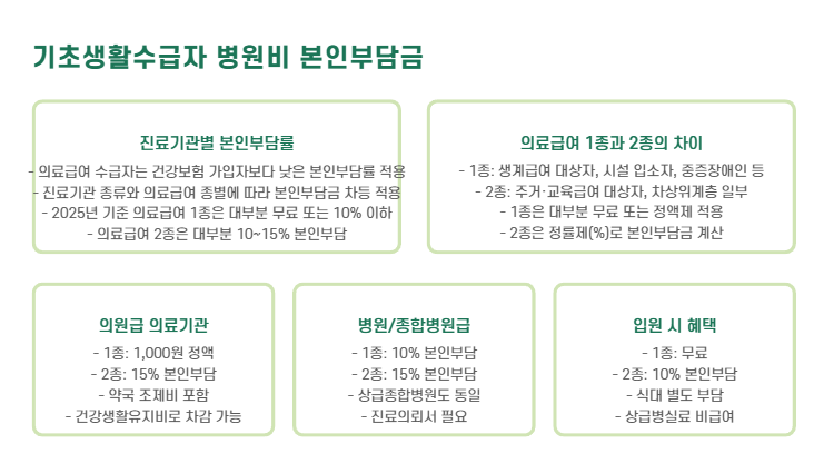 📌 의료급여 1종이면 병원 외래·입원 모두 무료 또는 10% 이하 부담으로 진료 가능