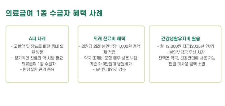 → 의료급여 1종 수급자라면 대부분의 진료에서 본인부담금이 거의 없거나 매우 낮습니다.