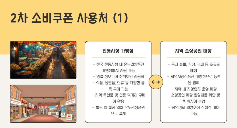 이번 쿠폰은 전통시장과 지역경제 활성화를 위한 특별 지원 정책으로, 소비 촉진과 물가 부담 완화를 동시 가져가는 정책입니다.