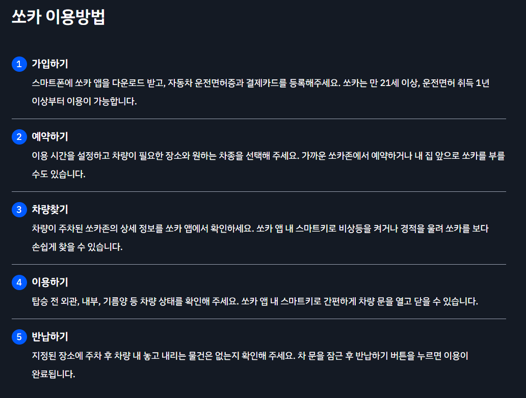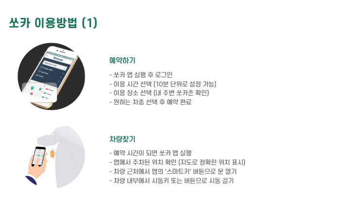 - 스마트폰 앱 하나로 예약부터 반납까지