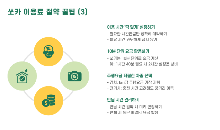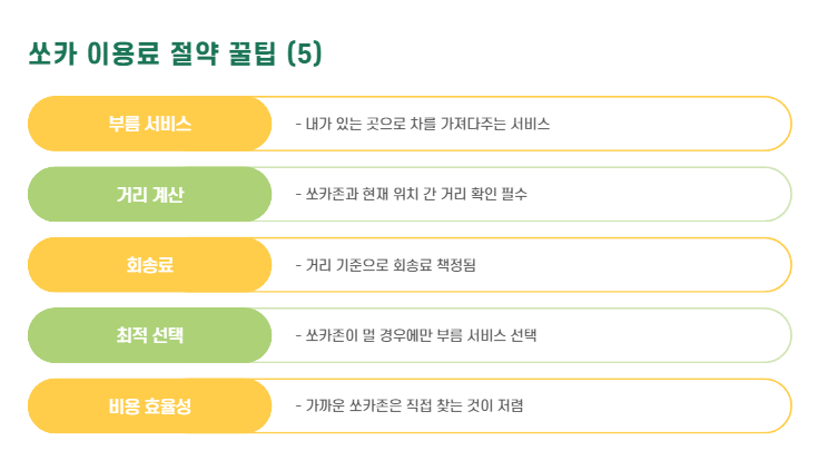 - → 쏘카존이 너무 멀 경우에만 선택, 가까우면 직접 찾는 게 저렴