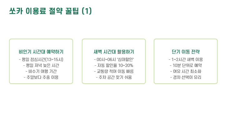 - 특히 새벽 시간대엔 ‘심야할인’ 자동 적용되는 경우도 있음