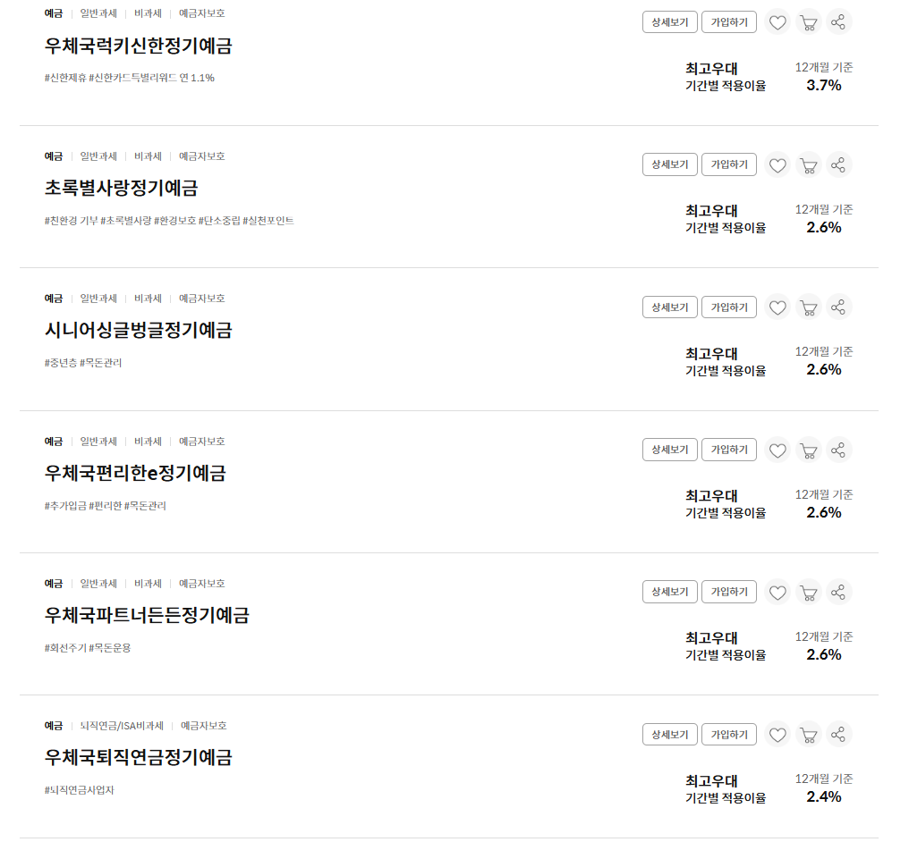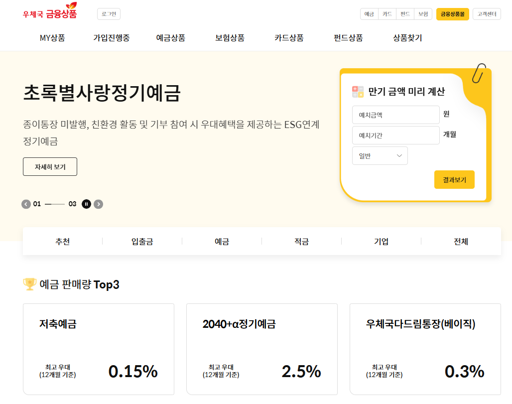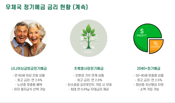 | 우체국편리한e정기예금 | 온라인 전용, 간편 가입 | 연 2.6% |