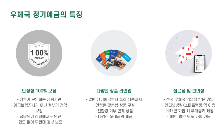 우체국은 정부가 운영하는 금융기관이라 안정성 100% 보장이 큰 장점입니다.