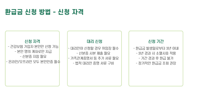 - 환급금은 신청하지 않으면 자동 지급되지 않으므로 반드시 신청이 필요합니다.