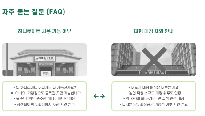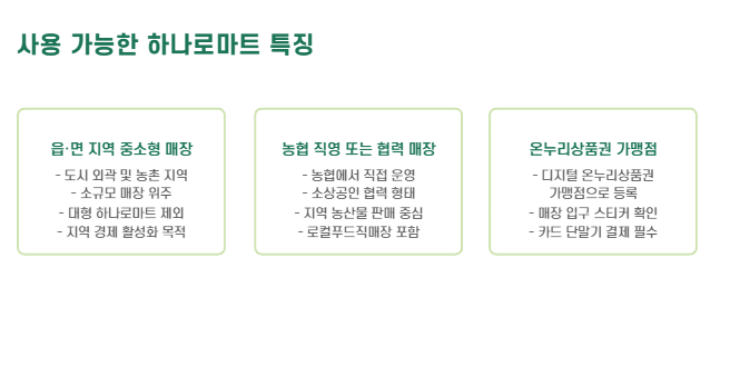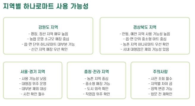 → 대형 하나로마트는 제외될 수 있으니, 작은 농협매장 중심으로 이용