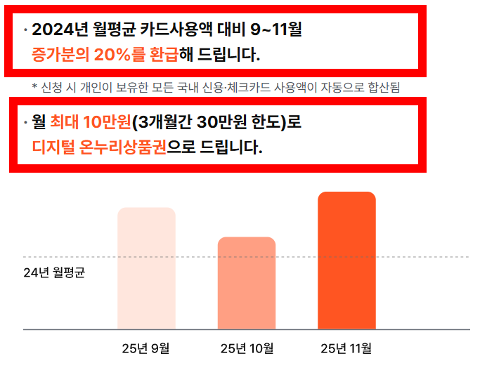 👉 2024년 월평균보다 2025년 9~11월 카드 사용이 늘어나야 실적 인정됩니다.