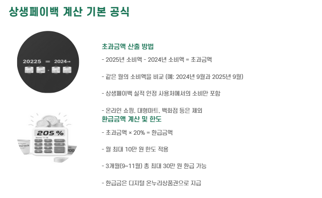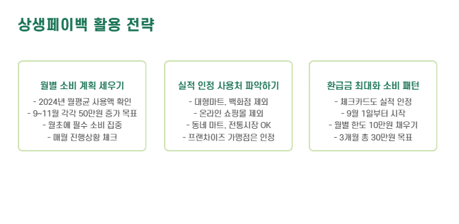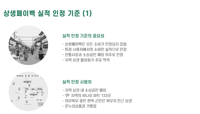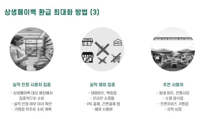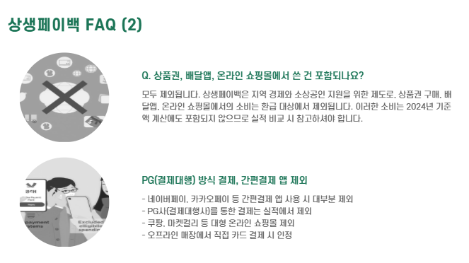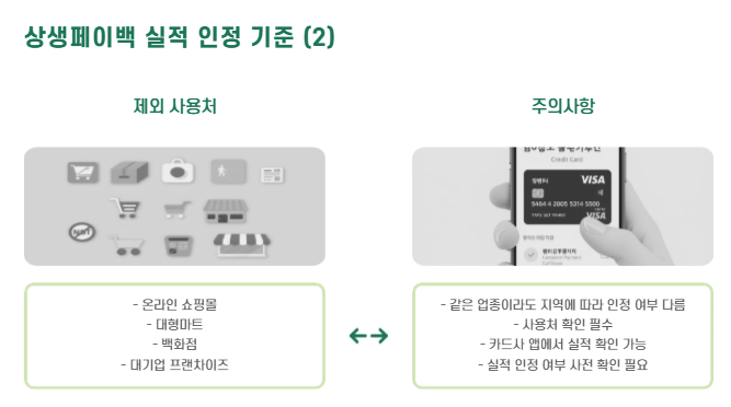 - 실적은 상생페이백 실적 인정 사용처에서 소비한 금액만 포함