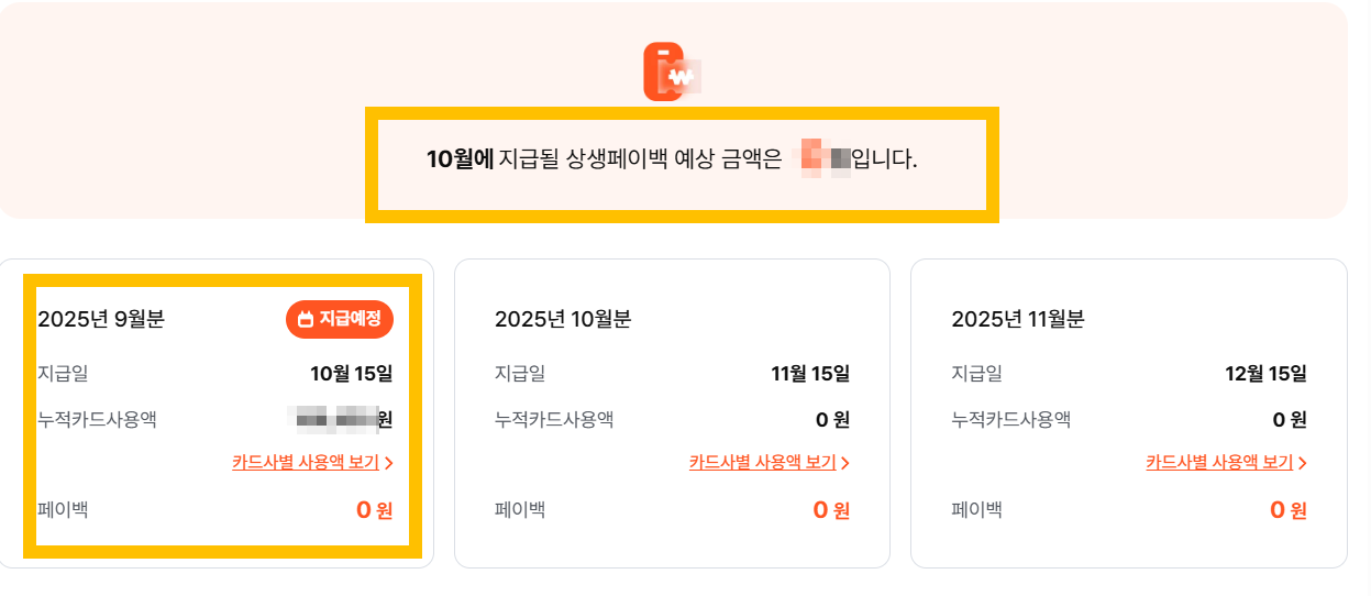 3. 월별 상생페이백 예상금액 확인