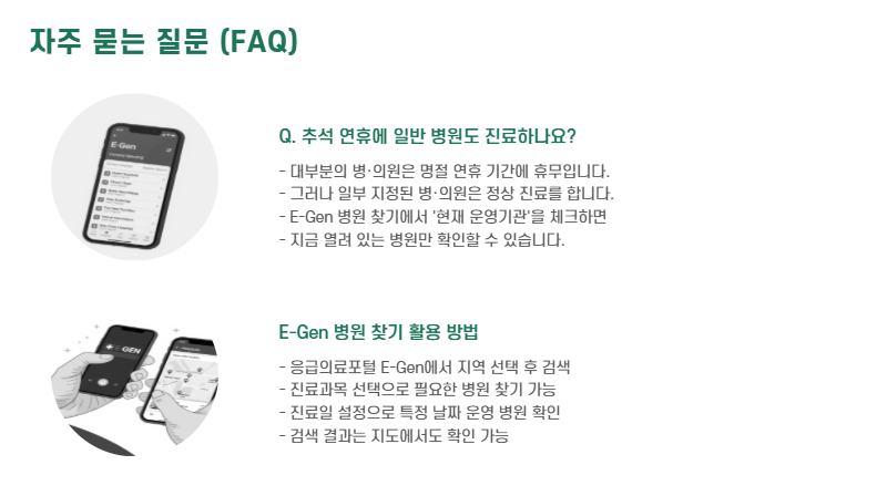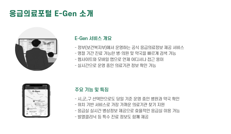 오늘은 정부에서 운영하는 ‘응급의료포털 E-Gen 병원 찾기 서비스’를 통해 명절 기간 진료 가능한 병·의원 및 약국을 빠르게 찾는 방법을 안내해 드릴게요.