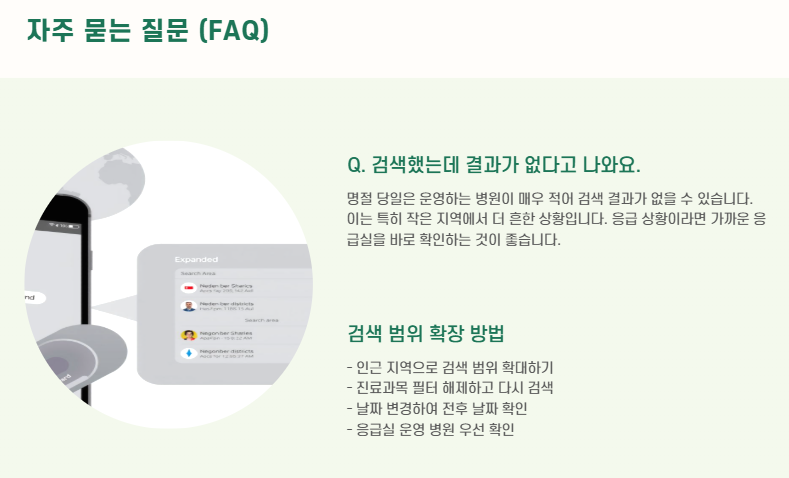 A. 명절 당일은 운영 병원이 적어 검색 결과가 없을 수 있습니다.
