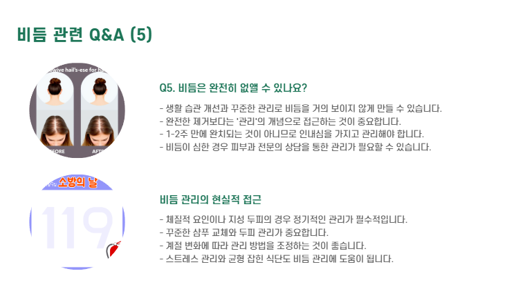 A. 생활 습관 개선과 꾸준한 관리로 비듬을 거의 보이지 않게 만들 수 있습니다.