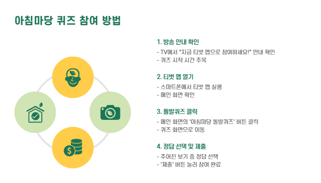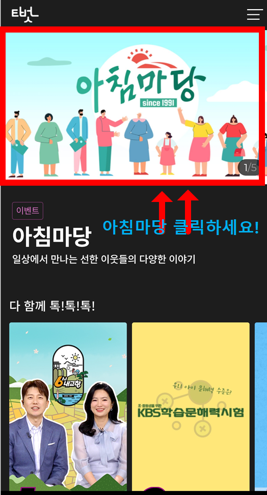 - 메인 화면에서 ‘아침마당 돌발퀴즈’ 클릭!