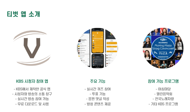 ‘티벗’은 KBS에서 만든 시청자 참여 앱입니다.