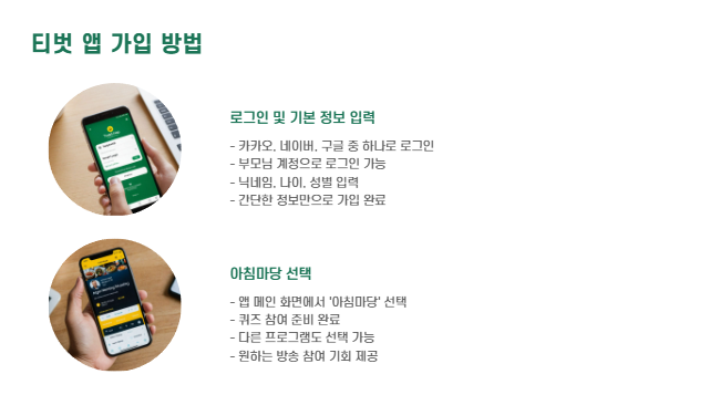 이번 글에서는 아침마당 티벗 가입방법 및 앱 설치에 대해 자세히 안내 드리겠습니다.