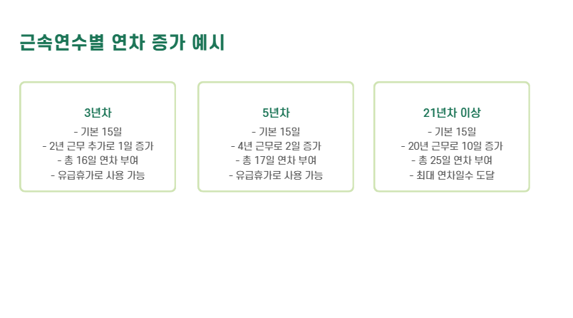 (예: 3년 차 → 16일, 5년 차 → 17일... 21년 차 이상 → 25일)